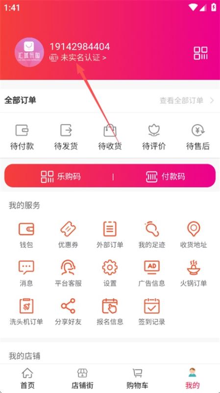 用户想要在汇城乐购app购物需要先进行实名认证