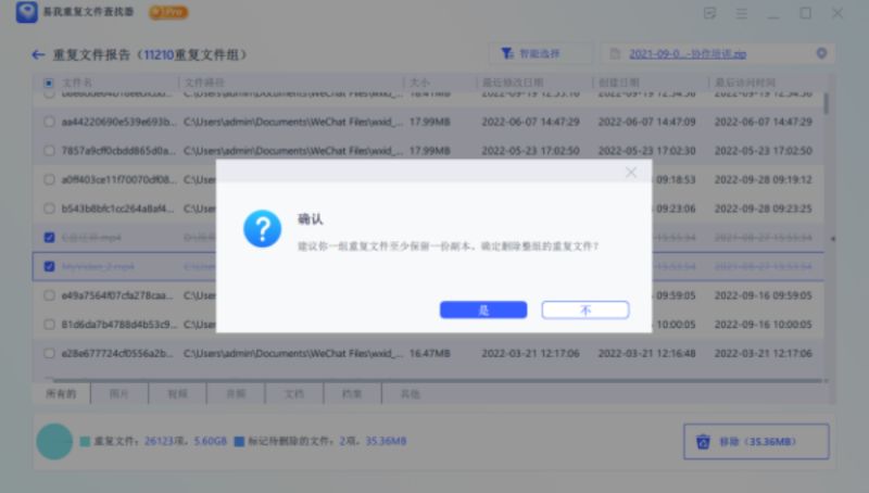 扫描并列出电脑中的重复文件